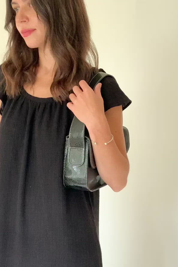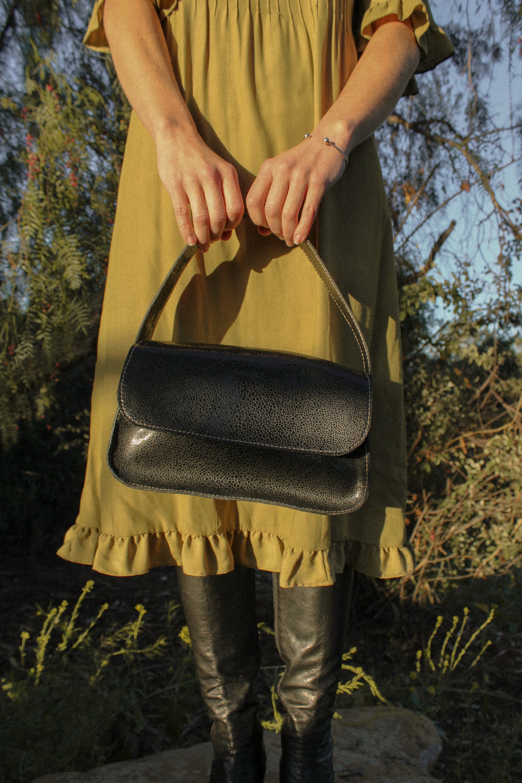 Made from Deadstock Faux Leather, our Salome Saddle Bag is as sustainable as it gets. The fabric for the Salome is locally sourced from a deadstock warehouse, and sewn by our bag artisan, Lidia, in Los Angeles. The bag is detailed with a thick shoulder strap and a saddle-esque flap.